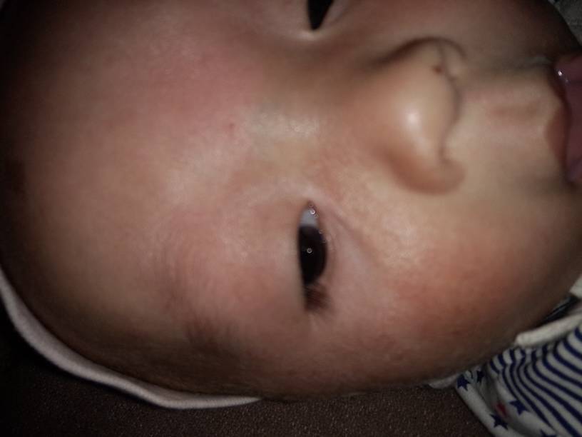 我家宝四个月了,开始脸上是一点点小米米,后来用了婴幼儿护理膏现在摸上去像癣一样,又像要脱皮了,到底