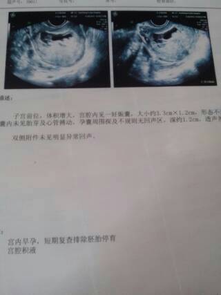 你才一个多月,检查这个也是多此一举。宝宝还是细胞,没成型呢。你的单子说宫内有早孕,孕囊增大意思就是说确定你怀孕。其他的附件没发现什麽症状。孕囊没无胎芽,无回声的意思是,你宝宝现在这个月份还形成不了胎心。所以看不到。最早看到胎心一般得在两个半月以后。最后单子给你的结论是短期内继续查胎心,以及宫内积液。...