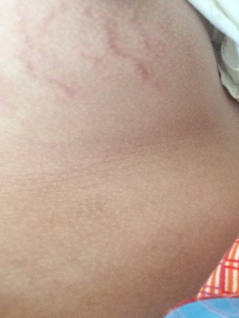 胸部下面长红红的纹路了,怎么回事呢~以前没有的…胸部也不涨,是妊娠纹吗???求解