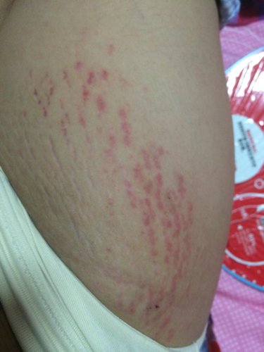 怀孕时体重增长了40斤,臀部,大腿根部腰上都因为体重突然增加而产生了肥胖纹,肚子正面也有妊娠纹,孕