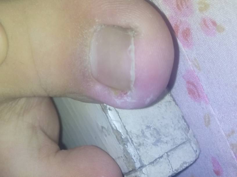 我是14的男孩,我的右脚大拇指右边的指甲进到肉里面,便把陷进去的剪短,然后流一点点血,就肿了,按一