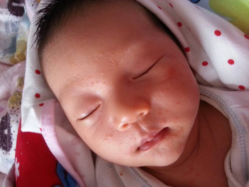 就是湿疹,少的话脸上你可认用母乳擦擦