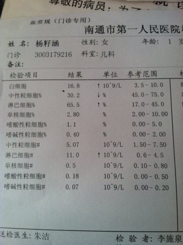 19个月宝宝女,前段时间小孩体检血象偏高再加上脸上有冻疮嘴里有口腔溃疡,现在脸上冻疮好了口腔溃疡也