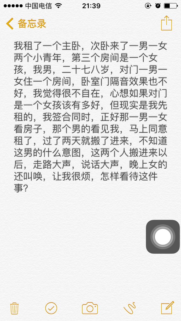 租了一个主卧,对门是一男一女两个人,让我很心烦,心想如果对门是一个女孩多好,怎样看待这种心理? 点击展开 匿名用户 2016-04-30 21:54 推荐回答 一个挤丛人孤单惯了 希望我的回行愚舞答对凡相您有帮助,欢迎随手采纳以为鼓励,祝您幸福! 德依玉_IyHQ 2016-04-30 21:59 宝宝知道提示您:回答为网友贡献,仅供参考。 相关问题 自己租了一个主卧,很怕对门次卧住着的一男一女瞧不起我,但第三个房间来了一个女孩,我发现对门这一男 刚租的房子,三室一厅 主卧门上贴着这个符~宝宝最近一直生病不乖 我租的房间厕所正对主卧,国历1985 5 3日生,我能住这间屋吗?并且带一刚两个月的小孩 化解方式有