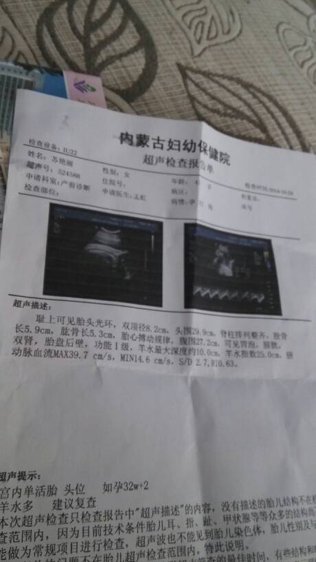 你好,看你的这些检查结果,胎儿大小相当于孕33周,如果你怀孕时间和这个差不多可以不需要担心,羊水多了,你还是注意不要喝太多水,多喝一些利尿的食物,像冬瓜汤,鲤鱼汤这些