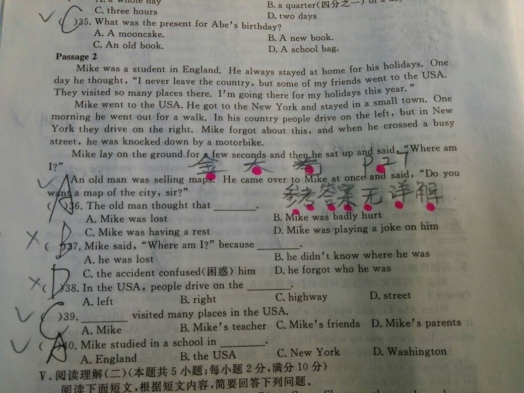 初一英语,阅读题,37,38,孩子自主学习,但是参考答案不全面,请老师和学霸指点一下,谢谢 点击展开 匿名用户 2015-05-11 20:25 满意回答 1.C 前面对于交通规则的介破剪揭次岩绍可知,为后面做密渐铺垫 2.B 第二段倒数第二行 匿名用户 2015-05-11 20:40 宝宝知道提示您:回答为网友贡献,仅供参考。 相关问题 初一英语,32,34,35,我孩子做错了,请学霸和老师帮忙看看,详细讲解一下错的原因和考点是 女儿13岁上初一了,可是孩子好像青春期特别明显,对男生有好感,而且主动逗男生,被老师误认为要去看心 新东方的夏令营怎么样啊?孩子在里面学习都是老师带着学么,还是自主学习啊?