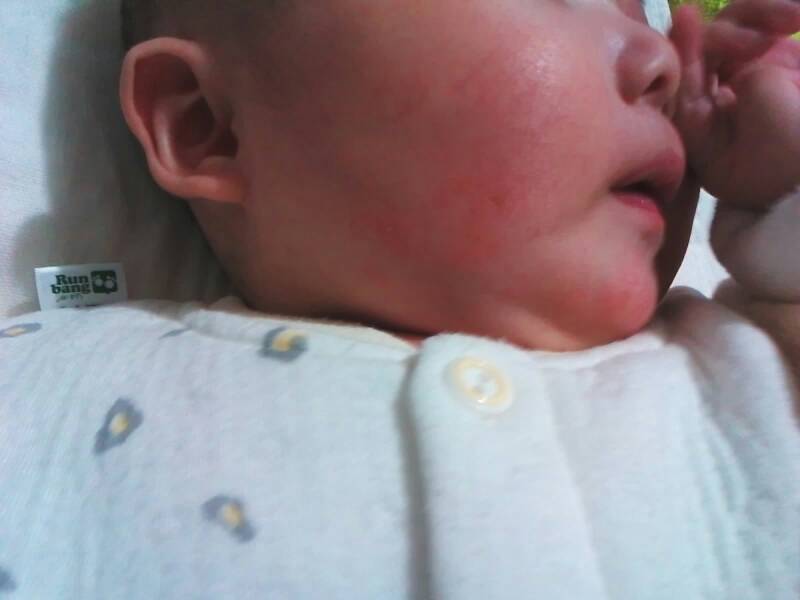 应该是湿疹、跟我家宝宝一样、去医院开点药膏就好了