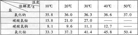 Ⅰ(1)置换反应 (2)Cl 2 、Br 2 、I 2 或Cl 2 >Br 2 >I 2 Ⅱ(1)NH 4 HCO 3 ;(2)在同温度下碳酸氢铵的溶解度小 (3) 本题考查的是;置换反应及其应用以及化学式与化学方程式的书写。Ⅰ(1)由反应的化学方程式可知该反应是一种单质与一种化合物反应生成一种新的单质和一种新的化合物,符合置换反应的定义,所以其反应类型属于置换反应。(2)在金属活动性顺序中,位于前面的金属能把位于后面的金属从它的盐溶液中置换出安宝来,而题目中介绍:非金属单质也具有类似金属与盐溶液之间的反务筛裕应规律,即在非金属活动性顺序中,位于前面的非金属能把位柿暖于后面的非金属从它的盐溶液中置换出来,结合C1 2 +2KBr=2KCl+Br 2 ,Br 2 +2KI=2KBr 2 +I 2 可知Cl 2 >Br 2 >I 2 Ⅱ(1)根据化学式的书写规律和读法规律,结合碳酸氢铵的名称,可知它由铵根和碳酸氢根组成,其中铵根显正一价,碳酸氢根显负一价,根据正价在前,负价在后,化合物中元素化合价的代数和为0,化学式应为:NH 4 HCO 3 (2)由上表可看出在同温度下碳酸氢铵的溶解度小,能以不溶物的形式存在,相当于沉淀,而复分解反应的条件是生成物中有沉淀或水或气体中至少一样。所以过程 ②中能发生反应。(3)由题意可知反应物为碳酸氢钠,生成物为碳酸钠、水、二氧化碳,条件为加热,据此可写出化学方程式。