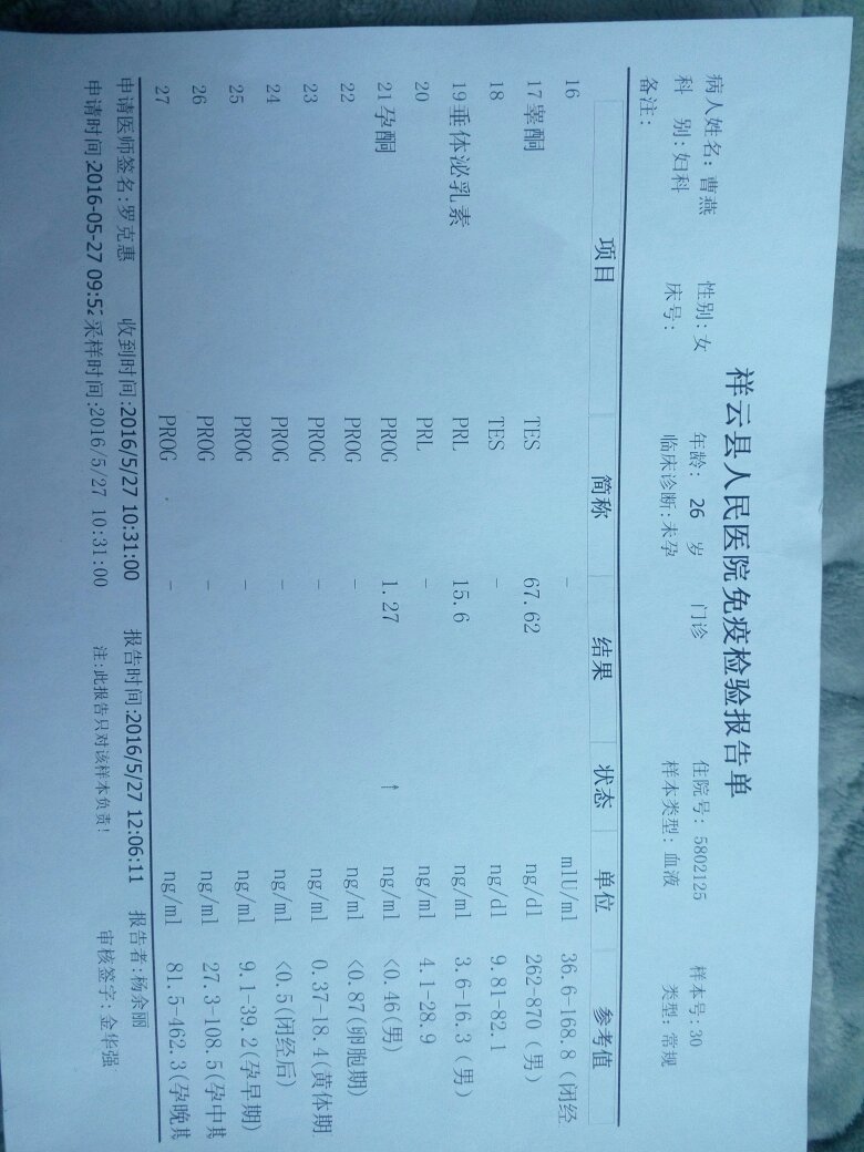 一直没有怀孕,抽血看有没有综合性卵巢,却看不懂报告单