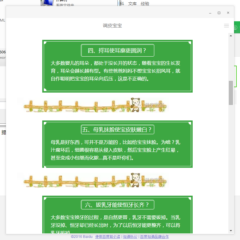 微信公众号:调皮宝宝 它里面推送的资讯是不是假的不靠谱? 点击展开 匿名用户 2016-06-30 13:47 为您推荐: 其他回答 资讯是可靠的 幸福鸣蚕 2016-06-30 14:58 相关问题 现在微信有很多公众号,只要你关注一下,就可以发宝宝照片过去做成影集,我想知道这样安全吗 最近网上认识一个女孩,不知道是否靠谱,通过微信聊的还不错,还是比较喜欢她,最近要见个面,不知道本人 江苏孕产妇保健手册配套的微信公众号