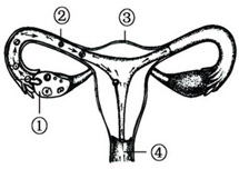 (1)图中 ①卵巢; ②输卵管; ③子宫; ④阴道(2)在男性的生殖系统中,主要的性器官是睾丸,其主要功能是产生精子和分泌雄性激素;在女性的生殖系统中,主要的性器官是卵巢,其主要功能是产生卵细胞和分泌雌性激素.卵子从卵巢排出后大约经8~10分钟就进入输卵管,经输揭哑卵管伞部到达输卵管和峡部的连接点处,并停留在壶腹部,如碰到精子即在此受精形成受精卵.一般情况下,卵巢一次只排一个卵细胞,只有一个精子与卵细胞结合形成受精卵.(3)、(4)胚泡中的细胞继续分裂和分化,逐渐发育成胚胎,并于怀孕后8周左右发育成胎儿,胎儿已柿捆梅具备务典人的形态;胎儿生活在 ③子宫内半透明的羊水中,通过胎盘、脐带与母体进行物质交换;怀孕到40周左右,胎儿发育成熟,成熟的胎儿和胎盘一起从母体的阴道排出,即分娩. 故答案为:(1)卵巢;输卵管;子宫;阴道(2)一(3)8;胎儿; ③(4)40周左右