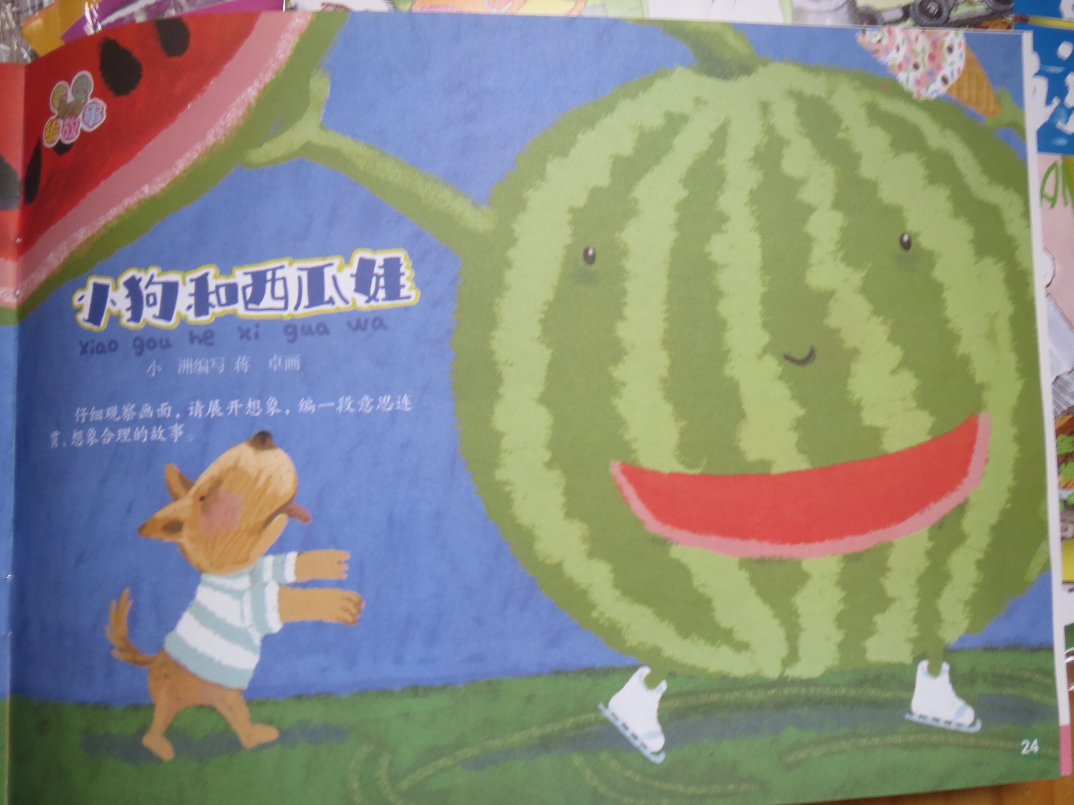 夏天到了,瓜抽趋揭园里的糟豆西瓜都成熟了,一个一个很诱人。天气很热,小狗狗口渴了。打算去瓜园里面摘个西瓜吃。可是小狗狗没有钱,怎么办那?小狗狗去找西瓜娃商量。西瓜娃送给小狗狗西瓜吃。为了表示感谢,小狗狗帮西瓜娃灿渐松土、施肥,干力所能及的活。互相帮助,他们成为了好朋友。