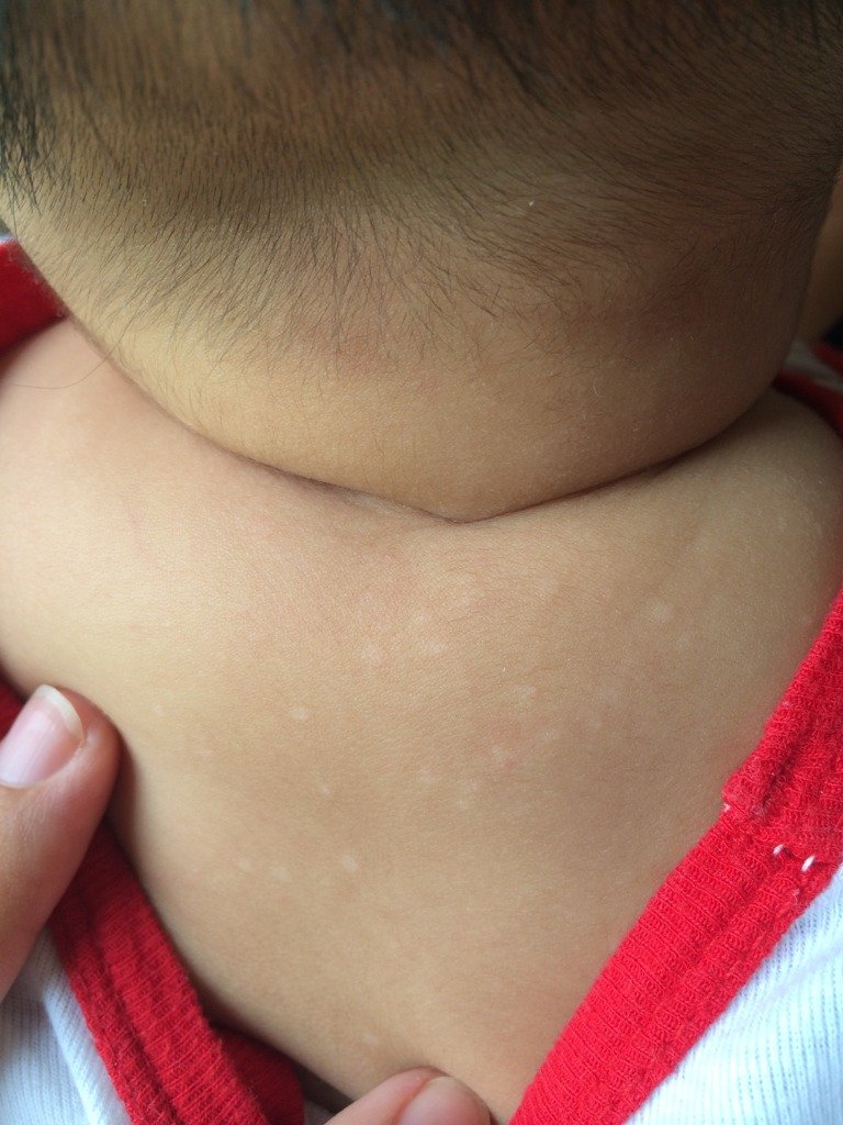 为什么宝宝背上和脖子下面长一粒一粒小白点 为什么宝宝背上和脖子下面长一粒一粒小白点 点击展开 134*****199_BhmA 2016-07-17 10:40 为您推荐: 其他回答 你好,是的。 cn#aBffkkGpLB 2016-07-18 13:18 不确定,先检查排除。 cn#aBffkkGpLB 2016-07-18 13:12 你好,根据你的情况描述,及图片上看,考虑为皮肤色素脱失,建议你查免疫学排除白癜风。 cn#aBffkkGpLB 2016-07-18 13:07 去医院看看吧 136*****001_JOON 2016-07-17 13:13 问问医生吧。 冬忆。绘心@ 2016-07-17 11:34 加载更多 相关问题 宝宝脖子颈纹上长许多的小白点,要怎么办呢? 快三个月的宝宝脖子上长满了红红的,药膏也涂了,就是没用真不知道该怎么办有断时间了 宝宝四个半月了,今天发现下面牙床有个小白点,是要长牙了吗?这段时间口水特别多,还一直拉肚子到现在肠