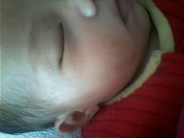 唉~烦死了,也不知道宝贝脸上这到底是啥,有人说是胎记,有人说是黄胆没褪完,害的宝贝今天连疫苗都没打