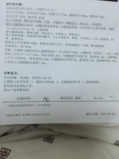求求你们救救我孩子、怀孕4个多月!双包胎、有一个胎儿膀胱厚度5.9mm.输尿管扩张 腹腔大量积液