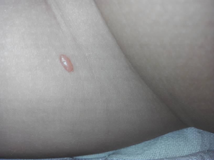 女宝4个月了,在大腿根部长了一个象泡泡一样的东西,大家给分析分析,看是什么啊?要治疗吗