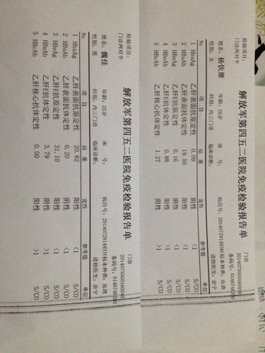 结婚体检,被告知有乙肝大三阳!回来后跟老婆去大医院做的检查!这是我们夫妻两的检查结果,明年想要宝宝