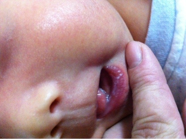 您好,鹅口疮。表现在口腔粘膜表面形成白色斑膜。 平时喂奶前最好用温水清洗乳晕。治疗鹅口疮可以用制霉菌素研成末与鱼肝油滴剂调匀,涂搽在创面上,每4小时用药一次。祝您早日康复