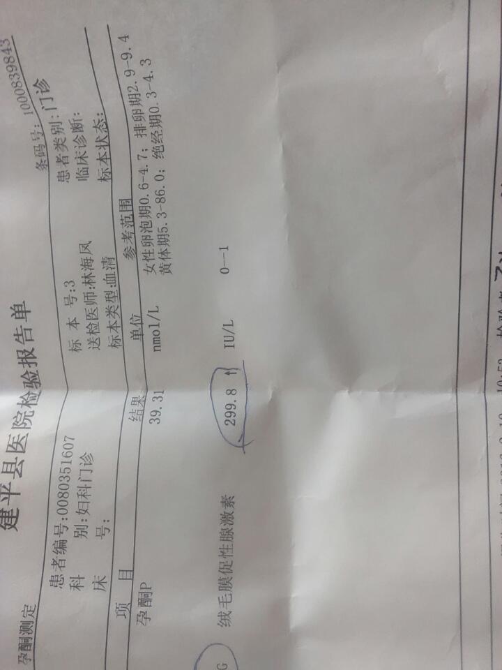 怀孕45天了,阴道有粉色血很少,昨天去b超子宫内没有孕囊,38天时去验血结果如图,正常么