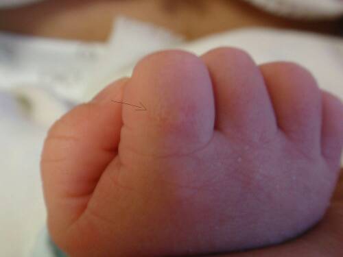 儿子的手背上长成这样,一颗一颗红红的,是手足口病吗?一边膝盖有几颗,脚不会,嘴巴也没有,好担心急哭