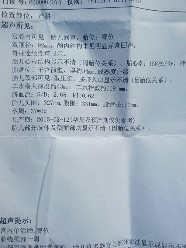 各位宝妈们 我 怀孕37周 胎位不顺 脐带绕颈一星期胎盘2级 我想这 各位宝妈们 我 怀孕37周 胎位不顺 脐带绕颈一星期 胎盘2级 我想这个月31号月底 就是腊月十二剖腹产 不知道可不可以 有没有37周剖腹产的宝妈们啊 点击展开 思彤宝贝 2015-01-27 16:35 推荐回答 根据描述,现在37周胎盘2级还未老蛇吉菠化,胎儿还会长一些。俗裁如无异常,建议再观察间敢下,择机剖腹比较好。 wzlzx520 2015-01-27 16:59 宝宝知道提示您:回答为网友贡献,仅供参考。 相关问题 胎位不正,脐带绕颈一周,胎盘离宫口20mm怎么办 胎位头位,羊水5 6C M 胎盘后壁I I 级胎心131次脐带S /D R I 双围28 1C M 腹围25 6C M 股骨长5 6C M 双… 各位宝妈们 我 怀孕37周 胎位不顺 脐带绕颈一星期胎盘2级 我想这