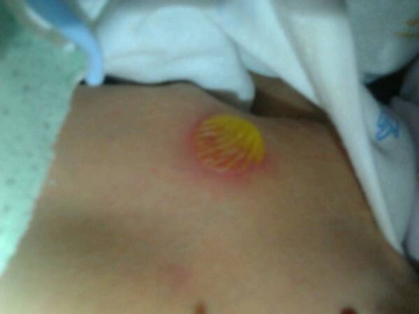 宝宝才七天刚从医院回家就起了三个黄色小痘痘比黄豆小小一点 一个在胸口 还有两个在脖子上 在胸口的一天