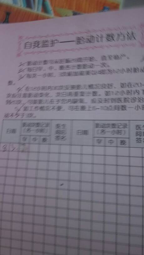 胎动计数怎么填 胎动计数怎么填 点击展开 ↙快樂+~由莪↗ 2014-08-04 13:33 为您推荐: 其他回答 每小时3-5次 麥芽糖 2014-08-05 23:09 相关问题 胎动计数怎么计? 简单 有效判断胎儿安危的指标是 胎动计数 吗 妊娠期如何指导孕妇进行胎动计数?