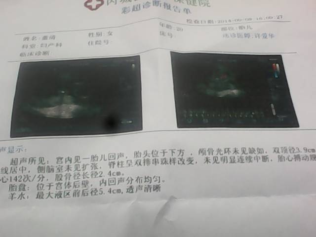 今天下午做的彩超,帮忙看一下,好不好? 今天下午做的彩超,帮忙看一下,好不好? 点击展开 为爱付出 2014-09-08 22:31 为您推荐: 其他回答 可以的,检查的疾病不一样 张笑珠 2014-09-08 22:38 恩,挺正常的,宝妈放心吧 欣妍麻麻~梁帅帅 2014-09-08 22:36 你好,B超检查结果初步显示宝宝发育正常,在孕14-19周做唐氏筛查,孕22-26周做四维彩超产前排畸,这样可以明确宝宝在宫内的发育情况。 张笑珠 2014-09-08 22:35 很正常,祝好孕 从零开始_kGmU 2014-09-08 22:33 挺好的,没什么事,好孕 淘淘妈嘛 2014-09-08 22:32 相关问题 昨天下午见了点红,今天去做了个彩超帮忙看一下正常吗?谢谢 这是我4月18号做的彩超 哪位帮我看一下怀孕多久了 孕28周做彩超好不好