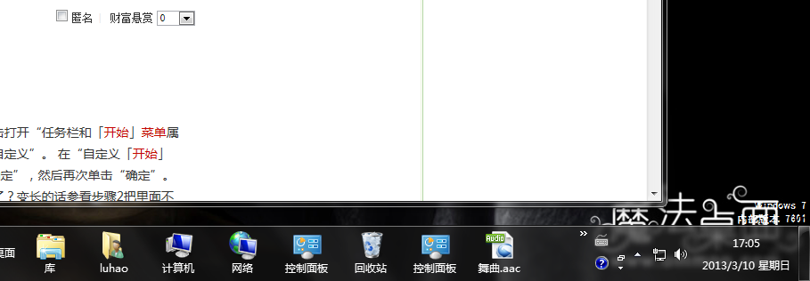 可以使用360安全卫士修复: 360安全卫士→电脑门诊→综合问题→ ⑩(可能会变)→任务栏异常→立即修复 参考资料:【电脑应用·桌面设置面面观·各取所需】(用 谷歌 搜索引擎找到此博文) http://blog.sina.com.cn/s/blog_4a1faae60102dw7a.html