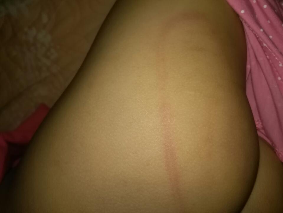 今天女儿实在惹我太生气了,就忍不住拿衣架打了她屁屁,现在有印印的红条,现在后悔死了 以前都是用手打