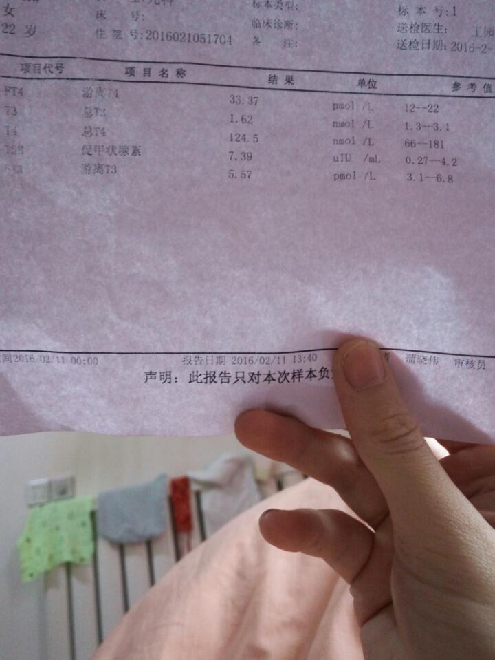 宝宝出生五天了,检查FT4-游离T4高十点多,TSH-促甲状腺素高3点多怎么办?容易治疗吗? 宝宝出生五天了,检查FT4-游离T4高十点多,TSH_促甲状腺素高3点多怎么办?容易治疗吗? 点击展开 Mrs.尹 2016-02-11 16:41 为您推荐: 其他回答 没事的啦😄 女人不坏,男人不爱 2016-02-11 21:40 问问医生, 慧,嘉, 2016-02-11 18:37 去医院看看 末末, 2016-02-11 18:17 你有甲状腺疾病吗? zjsun 2016-02-11 18:15 问一下医生 若不是深爱、怎会如此无奈 2016-02-11 17:28 加载更多 相关问题 我老婆怀孕4个月了,昨天去产检,查到超敏促甲状腺激素(TSH)57 35 游离T4(FT4)4 13 游离T3(FT3)3 65 婴儿促甲状腺素TSH高游离T4高 我老婆怀孕4个月了,昨天去产检,查到超敏促甲状腺激素(TSH)57 35 游离T4(FT4)4 13 游离T3(FT3)3 65