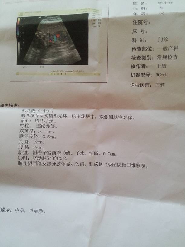 你好,这个超声检查结果报告单写的比较简单,写出来的没有什么大问题,但是颜面和四肢看不清楚,可能是因为这家医院的设备差一些,也可能是因为别的原因。看不清楚不一定就是有问题。你可以找一家大些的医院做个四维彩超再看看。