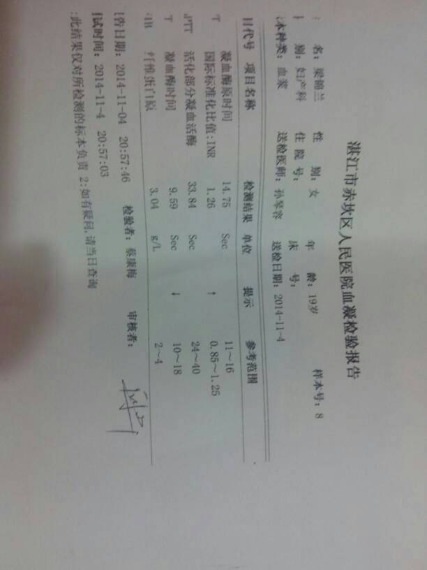这是什么意思啊?医生可以帮我回答下,谢谢啦! 这是什么意思啊?医生可以帮我回答下,谢谢啦! 点击展开 为了宝宝,没关系 2014-11-13 19:57 为您推荐: 其他回答 指导意见:你好,这是检查的凝血四项等,凝血功能的检查 ,是检查有没有出血不能自己凝血的情况。基本上是正常的,不需要担心。 ke1008 2014-11-14 15:24 没事的宝妈 465_Nnyd 2014-11-13 21:40 相关问题 这是什么意思?有哪个医生能给我解答一下嘛???谢谢!!!! 有医生能帮我看下,有几个是显示上升的,怕吗?是什么意思呢?谢谢