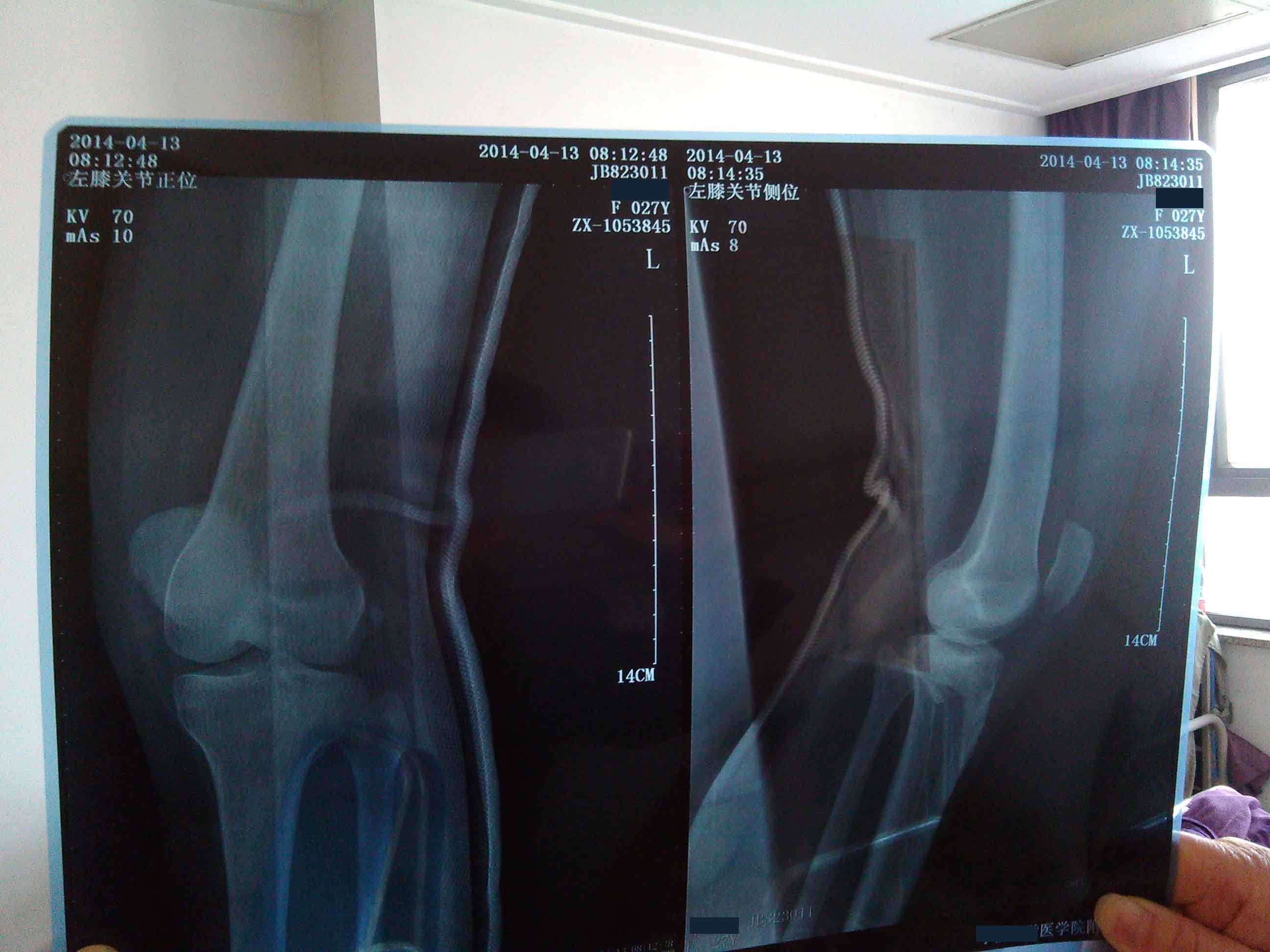 病情分析: 照的片子的清晰度不是太好,好像是腓骨有一些骨折。髌骨的位置也不正常。 指导意见: 骨折的部位是完全可以恢复正常的,如果韧带有断裂的情况,必须手术治疗才可以治愈。