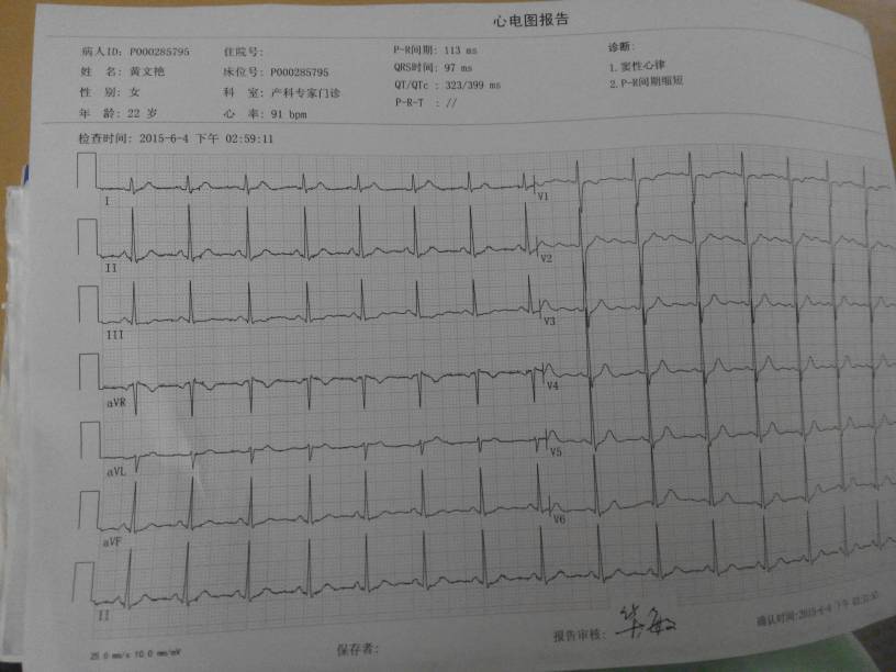 22周做的心电图,心率:91bpm 诊断1.窦性心率 2.P-R间期缩短 看了人家的都是正常,我