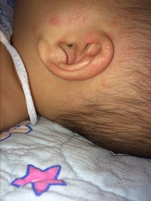 是由于孩子对蛋白质过敏引起的,婴儿时期的湿疹主要是对奶粉或母乳中的蛋白质过敏引起的,如果不是很严重,可以不用治疗,1岁半以后会自然好转。如果湿疹严重,可以涂湿疹膏来缓解症状。但是含有激素成分药膏不可以长期使用。等湿疹好点以后。用氧化锌软膏每天给宝宝擦。这就需要妈妈在护理方面非常注意。