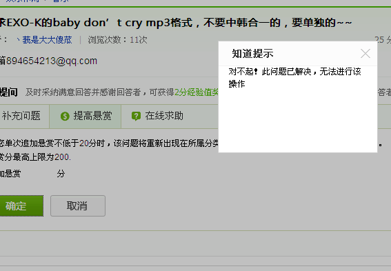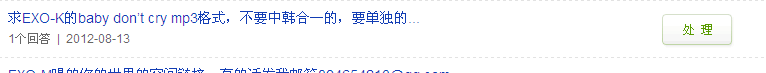 好奇怪啊~~~谁来帮我解释一下这是怎么回事!!!就是我发了一个求EXO BDC的韩文版的问问… 我明明已经采纳了。但是回过头一看那位亲的回答被吞了。。显示着没有处理,但是我又不能对这道题进行操作,说是已经处理了。。可是事实是没有处理好啊。怎么会这样子 点击展开 匿名用户 2012-08-13 18:13 满意回答 原来是网络问题。。 既然没有亲来回答我,还是用我妹的号缘肆回答吧。。可怜了悬赏分贵厘啊贵某碗~~~ 匿名用户 2012-08-13 18:33 宝宝知道提示您:回答为网友贡献,仅供参考。 相关问题 exo当年是不是喜欢过同一个女孩 只是问问,因为EXO自己写的歌好像都和同一个女孩有关 我特讨厌韩国EXO和BigBang!这俩玩意儿就是我的终生情敌!两个女孩都以为这两玩意儿动情!呜呜 这个不是我啊!我只是问问这个女孩长的怎么样,还有就是我见过她!求真城答案,如果追她行不?