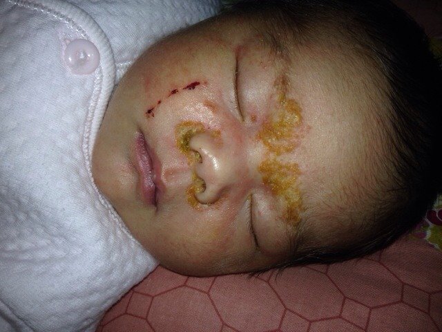 你好,像你家宝宝这种的话算是那种湿疹比较严重的,你可以在那些黄颜色的东西上面涂抹一些植物油,把它浸泡软了以后可以慢慢的擦掉