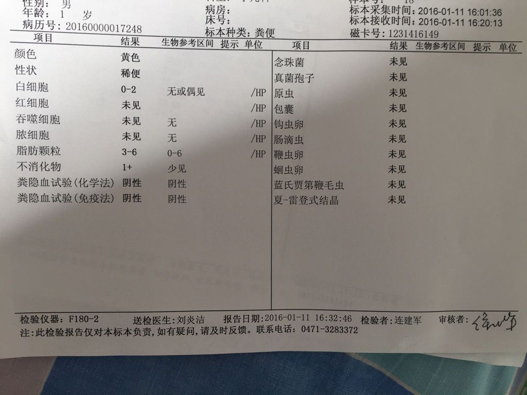 孩子这几天发烧,最高温度38.7,去医院体检做了血常规和粪便检测,然后大夫说是病毒感染,下面是化验