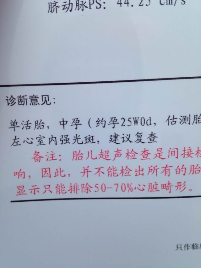 怀孕六个月照四维 医生说宝宝心脏有斑点 这是什么意思?会导致怎么样的后果? 点击展开 Nina﹑ 2014-08-18 10:36 为您推荐: 其他回答 你好,心室强光点只是一种超声的表现,并不是指的心脏畸形哦,所以不需要担心的,一般过几周就会消失的,可以再复查一下,不放心的话可以单位独再做一个心脏的彩超,具体听从医生的建议 有法律制裁你的 2014-08-18 10:37 相关问题 怀孕六个月照四維 医生说宝宝心脏有斑点 这是什么意思?会导致怎么样的后果? 22周+2了,请问糖筛,胎儿心脏彩超,四维彩超这三个检查分别是什么时间做合适?这里的医生让我24周 四维检查左心室有亮点 要做心脏彩超吗?有医生帮忙解答