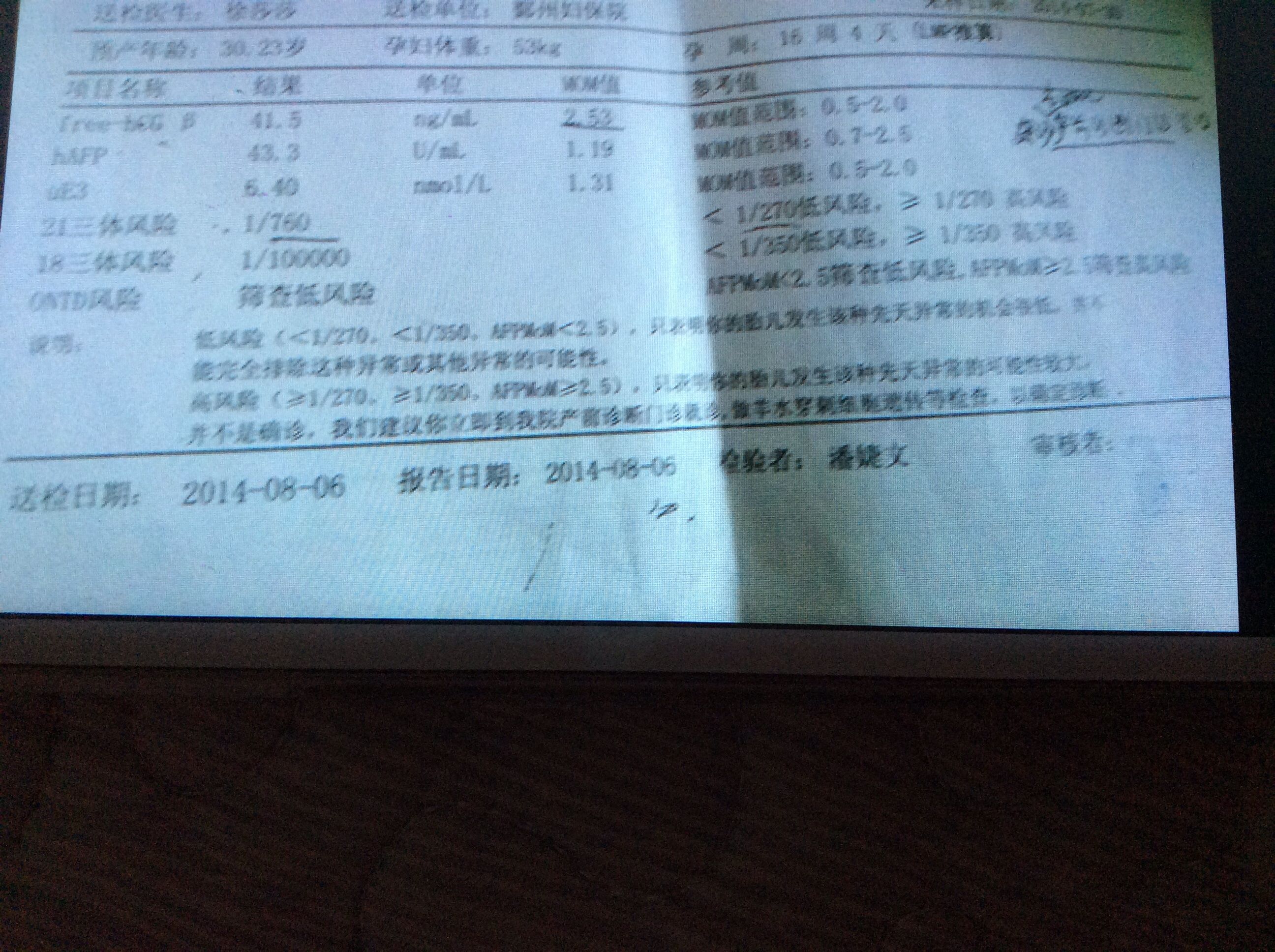我这张图你帮我看一下'要做羊水穿刺吗'谢谢 点击展开 乐乐果果果果 2014-08-26 19:05 为您推荐: 其他回答 你好。21三体的风险不是高风险,但是属于临界高风险,而且HCG的mom值高于2.0。虽然高风险的宝宝也大部分都是正常的,但是为了防止万一,避免漏诊,还是建议进一步检查,比如羊水穿刺或无创胎儿染色体检查。 shodobick 2014-08-26 23:48 相关问题 羊水穿刺结果出来了!如下图!这结果正常吗? 谁能看的出这张羊水穿刺报告单是男宝还是女宝,求解,很重要 谁能看的出这张羊水穿刺报告单是男宝还是女宝,求解,很重要