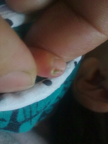 孩子可能有微小碰伤,没有注意,被感染了金葡菌或者链球菌引起的甲沟炎。建议局部开放后消毒,外用消炎药。还是到医院请外科医生处理吧,自己在家条件有限,不好保证包扎过程的卫生安全。