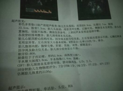 现怀孕40周+3了,昨晚三点有点见红了!躺着有轻微阵痛,站着没有,今天上午去医院,做了b超检查!和