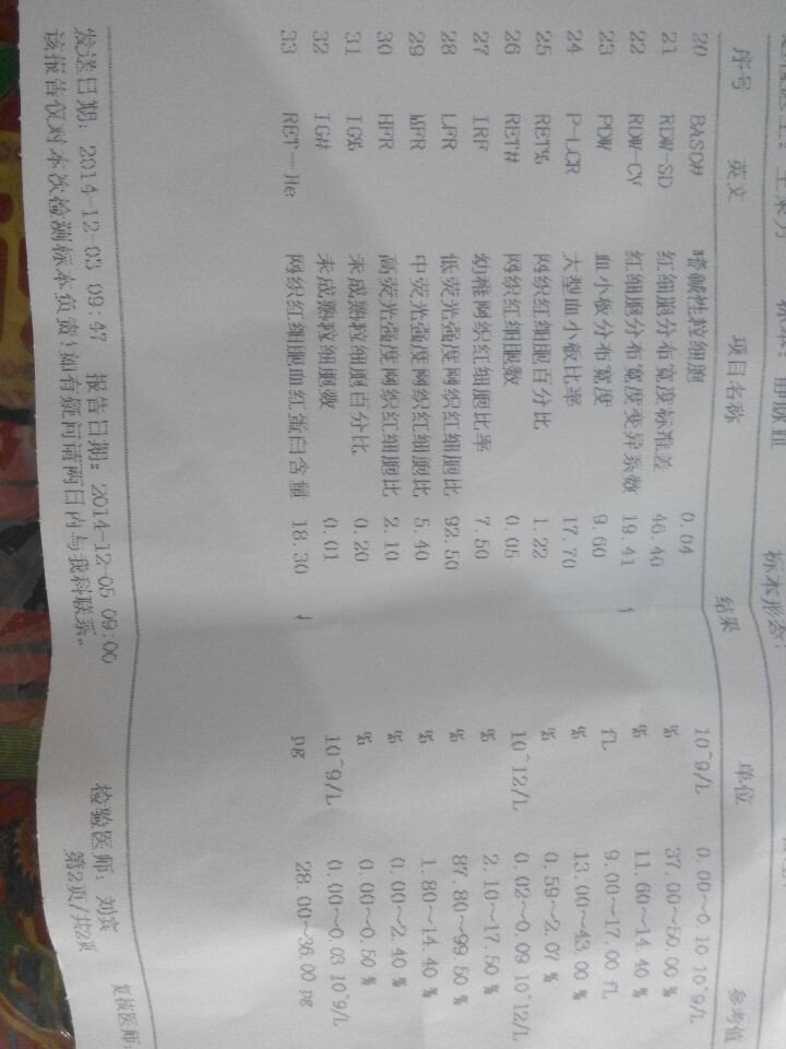请大家帮忙看看我的化验单啊,我有子宫肌瘤,大约3公分左右,并且是多发性的,大约2年多都月经特别多的了