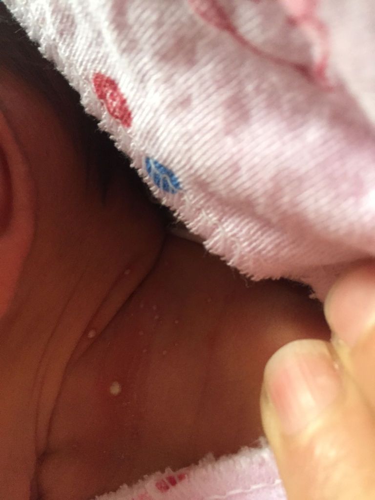 新生儿出生6天脖子有好多脓白泡怎么办,怎么处理,尽量不吃药打针 家里温度21度,孩子会冷着热着嘛? 点击展开 匿名用户 2016-02-27 15:52 满意回答 这个情况首先注意局部清洁卫生,可柿逼今以用金金唤银花煮务侨水洗澡,配合涂搽婴宝。 loveɨ 2016-02-27 16:10 宝宝知道提示您:回答为网友贡献,仅供参考。 相关问题 新生儿出生七天,温度表37度3算发烧么? 孩子发烧两天,吃小安瑞克,是退烧啦不过每次再烧温度就高,37 2-38 5今天又39 5啦用打针吗 新生儿用体温计测量脖子温度36 1正常吗