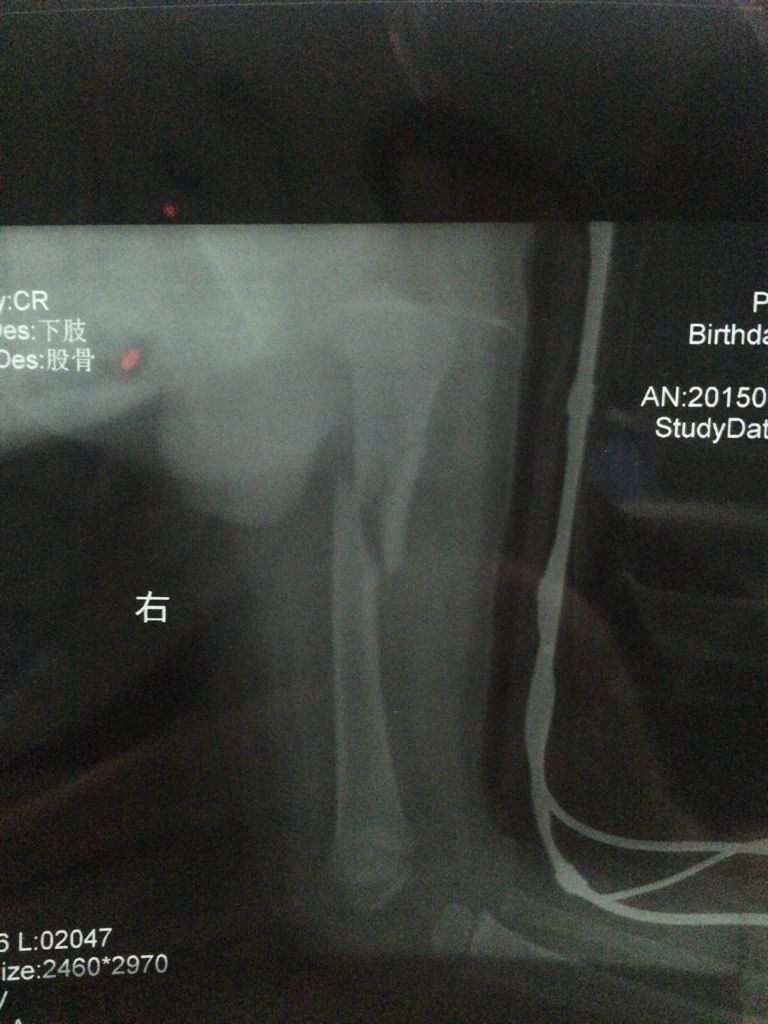 有骨科医生吗?求求你帮帮我,我儿子才一岁零九个月,于7月27日下午玩耍把右大腿骨折了,有点严重,现 有骨科医生吗?求求你帮帮我,我儿子才一岁零九个月,于7月27日下午玩耍把右大腿骨折了,有点严重,现在在县城中医院就诊,医生叫我们保守治疗,但是我不懂,我看片子恢复得不怎么样,我怕儿子以后会有后遗症,现在好难过,求求你们救救我儿子,帮我给点建议! 点击展开 匿名用户 2015-08-01 01:57 推荐回答 大战婚玻腿腿骨梨堡折,苦宰上部三分之一,不是摔的吧,强烈建议您去大医院接受检查,这个不像预约手术,这个不能等 匿名用户 2015-08-01 08:21 宝宝知道提示您:回答为网友贡献,仅供参考。 相关问题 骨科医生你好…希望是医生来帮我急死了,马上预产期了大宝又这样…三岁儿从床上弄到了手拍片没骨折也没有 请一位骨科医生给看看,孩子右腿小腿摔伤骨折,接上了,不知骨 求骨科医生,我小孩4岁,左腿骨折,现在石膏固定,我想请问下专家,还要不要做手术 求骨科医生,我小