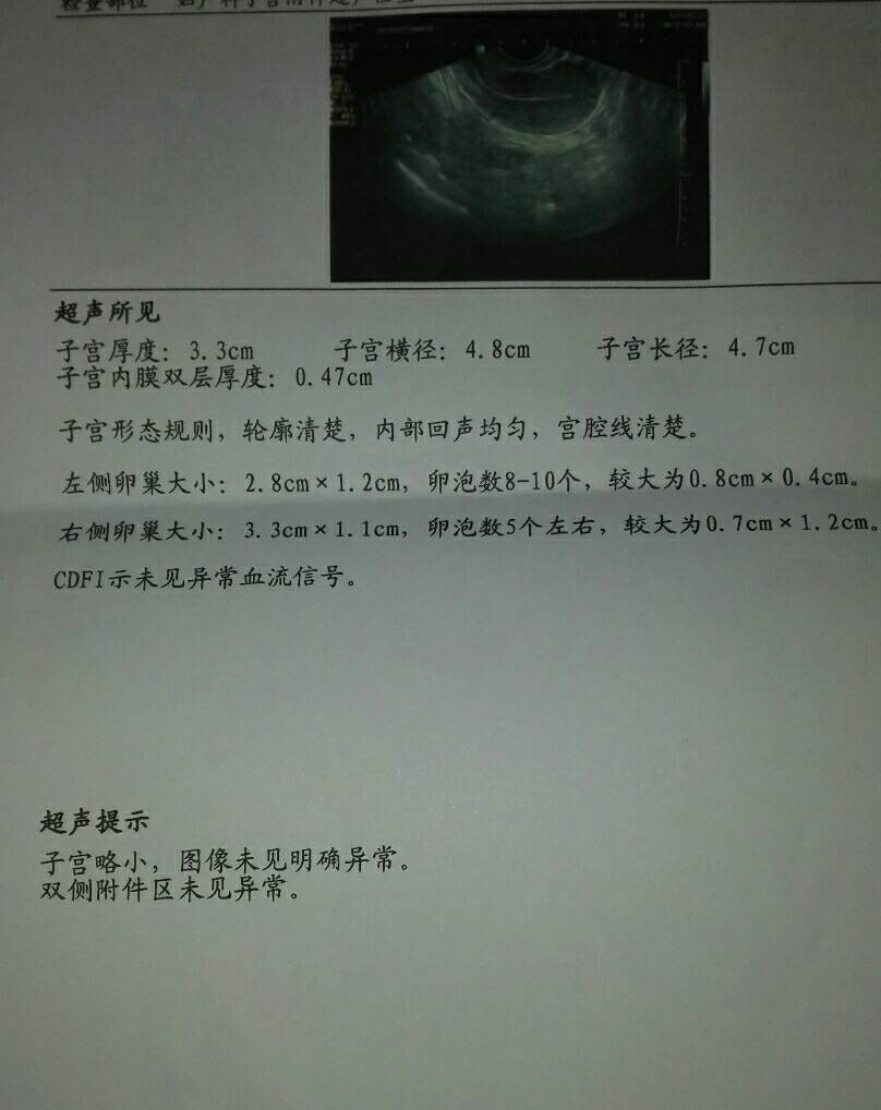 图片是今天监测排卵的情况,例假的第八天,上个月做了宫腔镜息肉手术,今天做完检查后,大夫让放两天药然