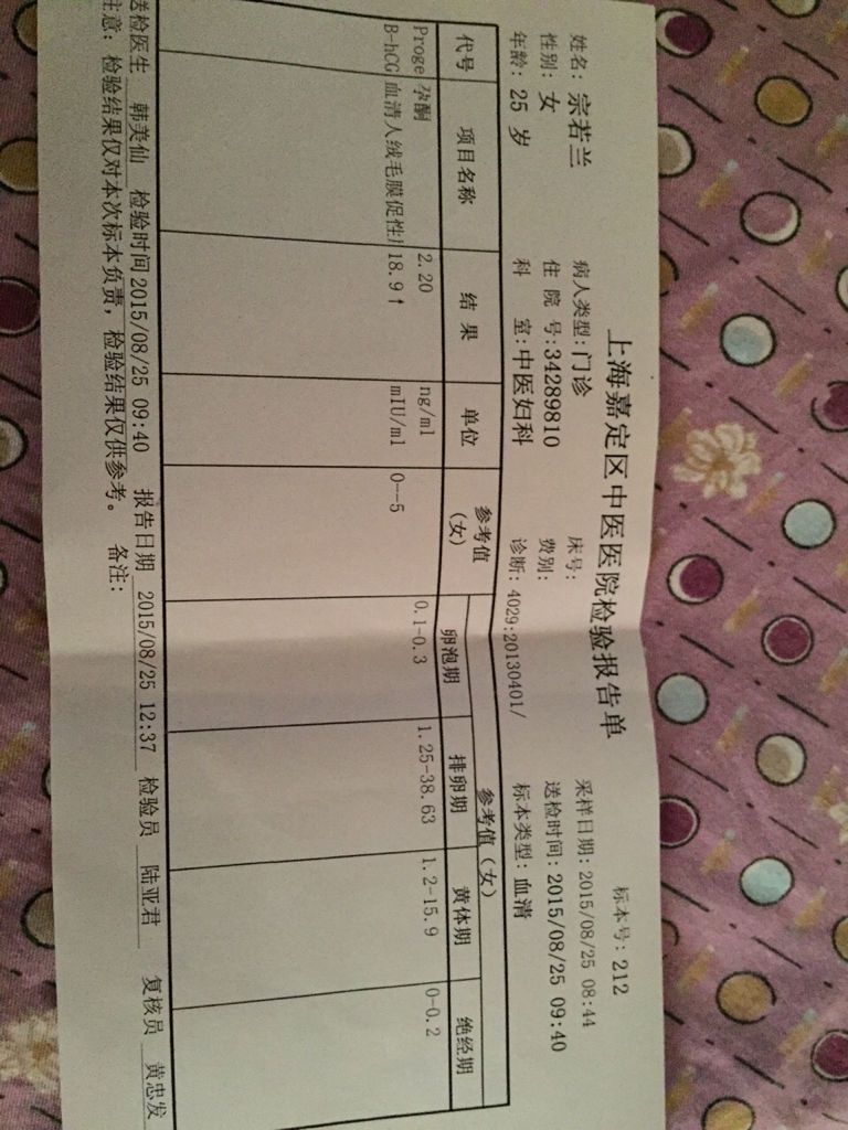 到现在停经一月余,今天是月经推迟了第八天 前星期尿检一直弱阳,昨天验血报告今天拿到,hcg18.7