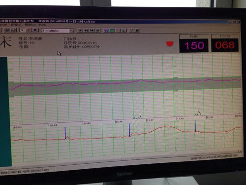 媳妇30,孕周 38。前段时间,吃西瓜肚子疼,来医院检查。肚子疼好了,大夫说孩子缺氧,胎动少,做胎心监护,说什么混合型,频率低。方言问题,听不太懂。住院一周了,每天4个小时听胎心,一天一个维生素c点滴,每天胎心监护一次。想出院吧,大夫总说之前有人不听,出院第二天孩子没了,怪吓人。想让大夫看看有没有问题,下边有胎心监护图