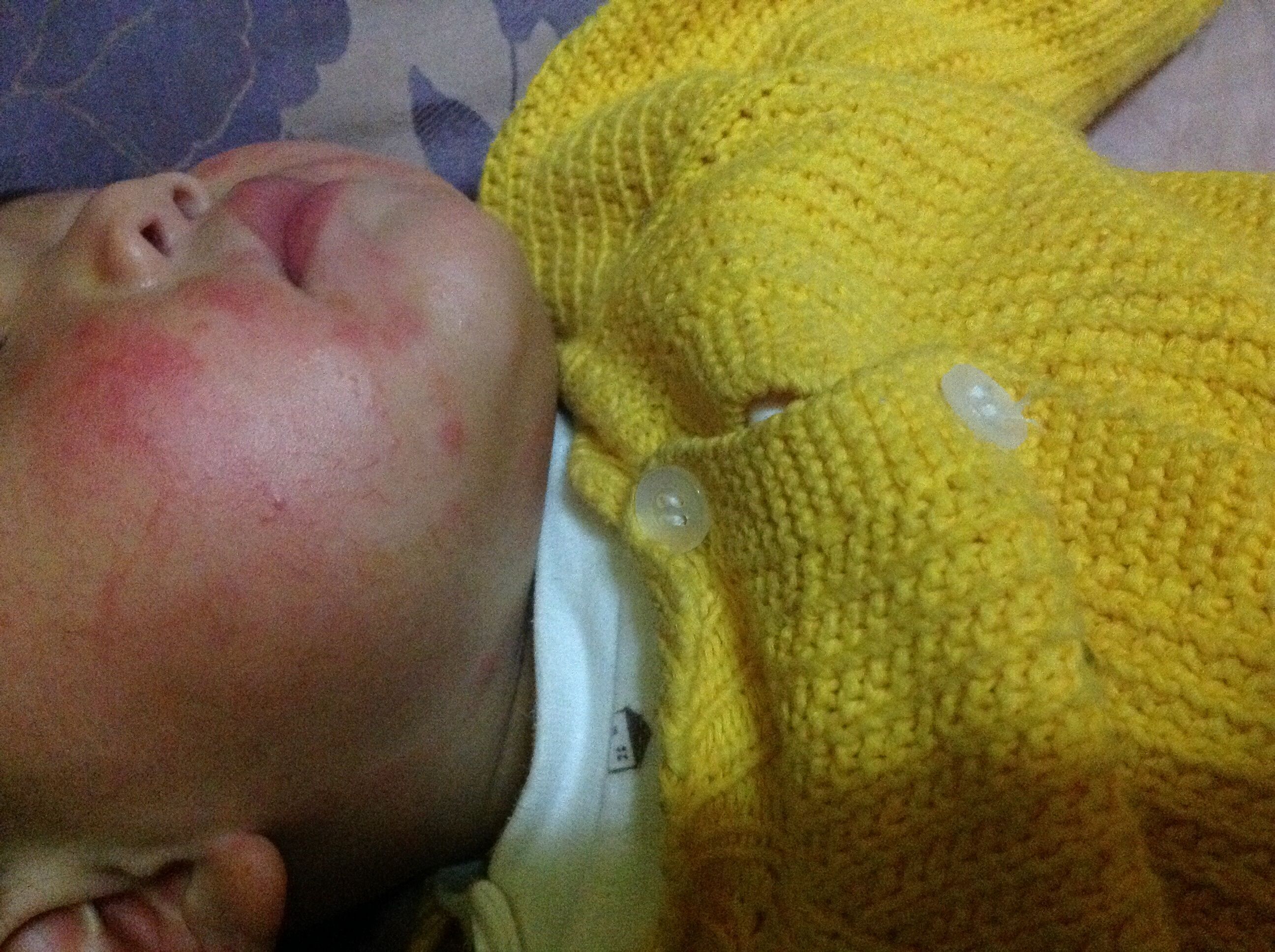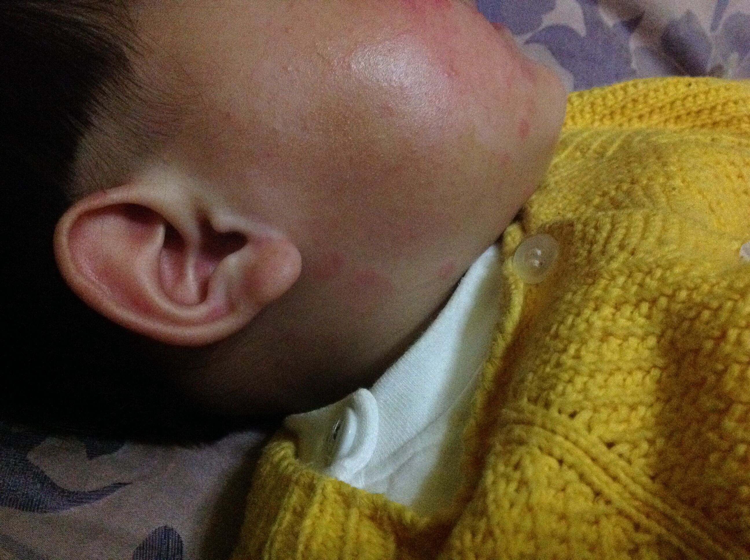 宝宝11个月了,昨天晚上换尿布时发现有红点,以为是尿布疹,今天下午发现红点扩散到全身了,大腿上脖子